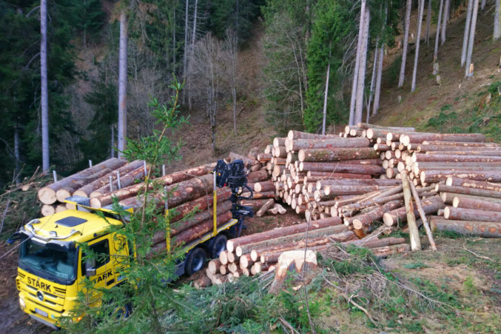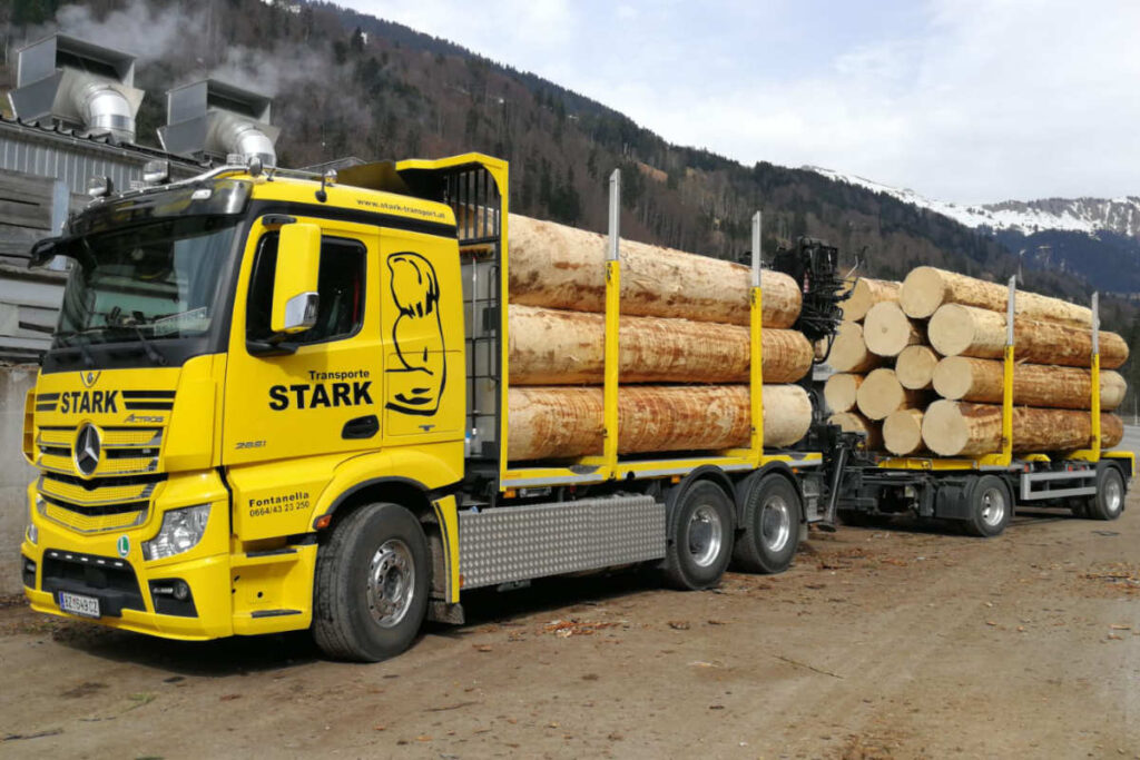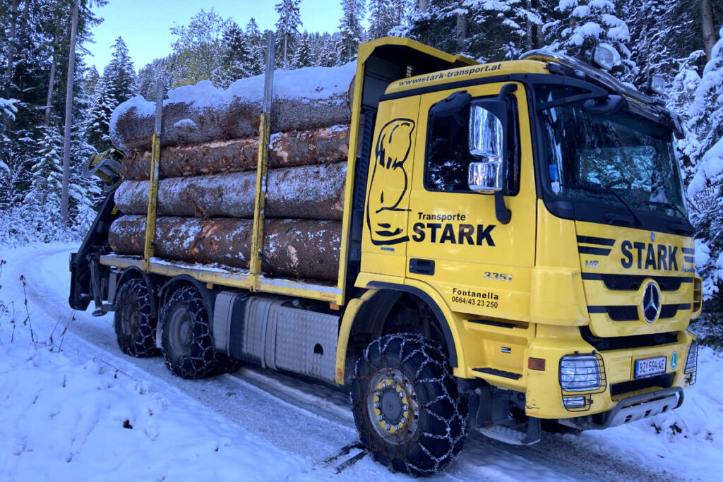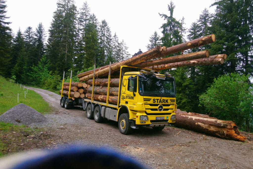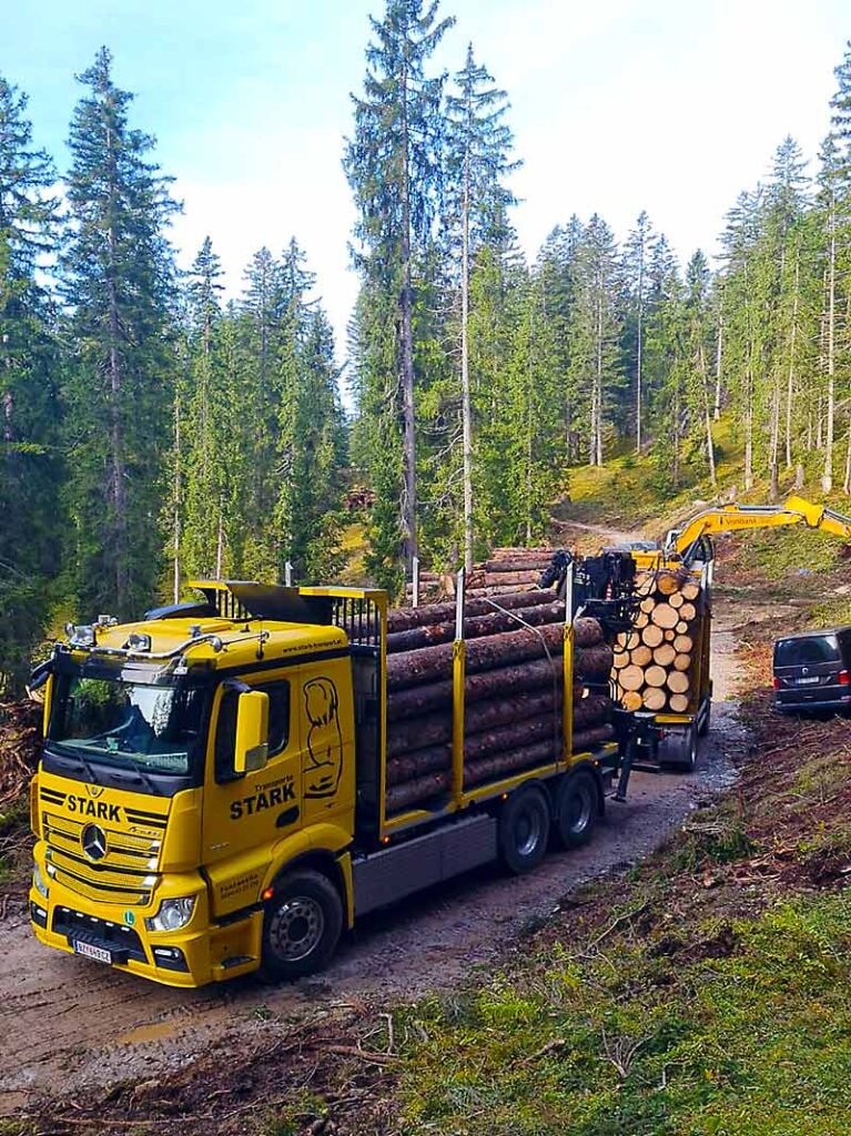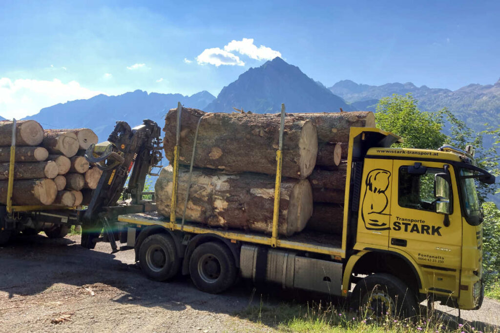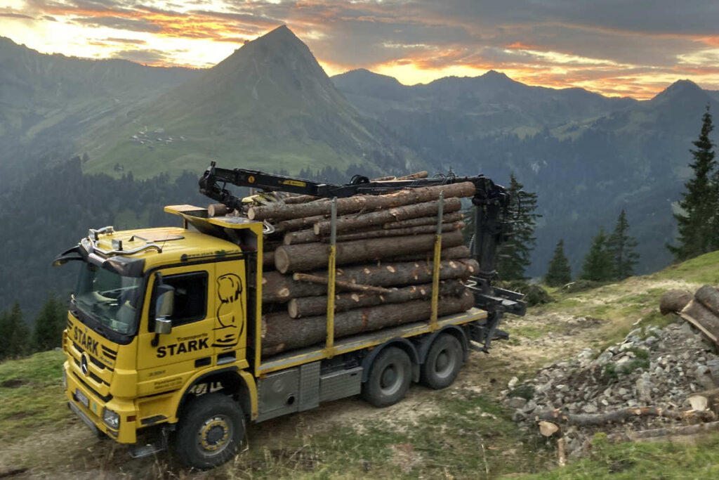 In Vorarlberg, ganz Österreich sowie den angrenzenden Ländern Deutschland, Schweiz und Italien übernehmen wir Holztransporte. Mit modern ausgestatteten Fahrzeugen transportieren wir Holz auch aus schwierigem Gelände, über unbefestigte Forststraßen und steile Hanglagen hinweg.